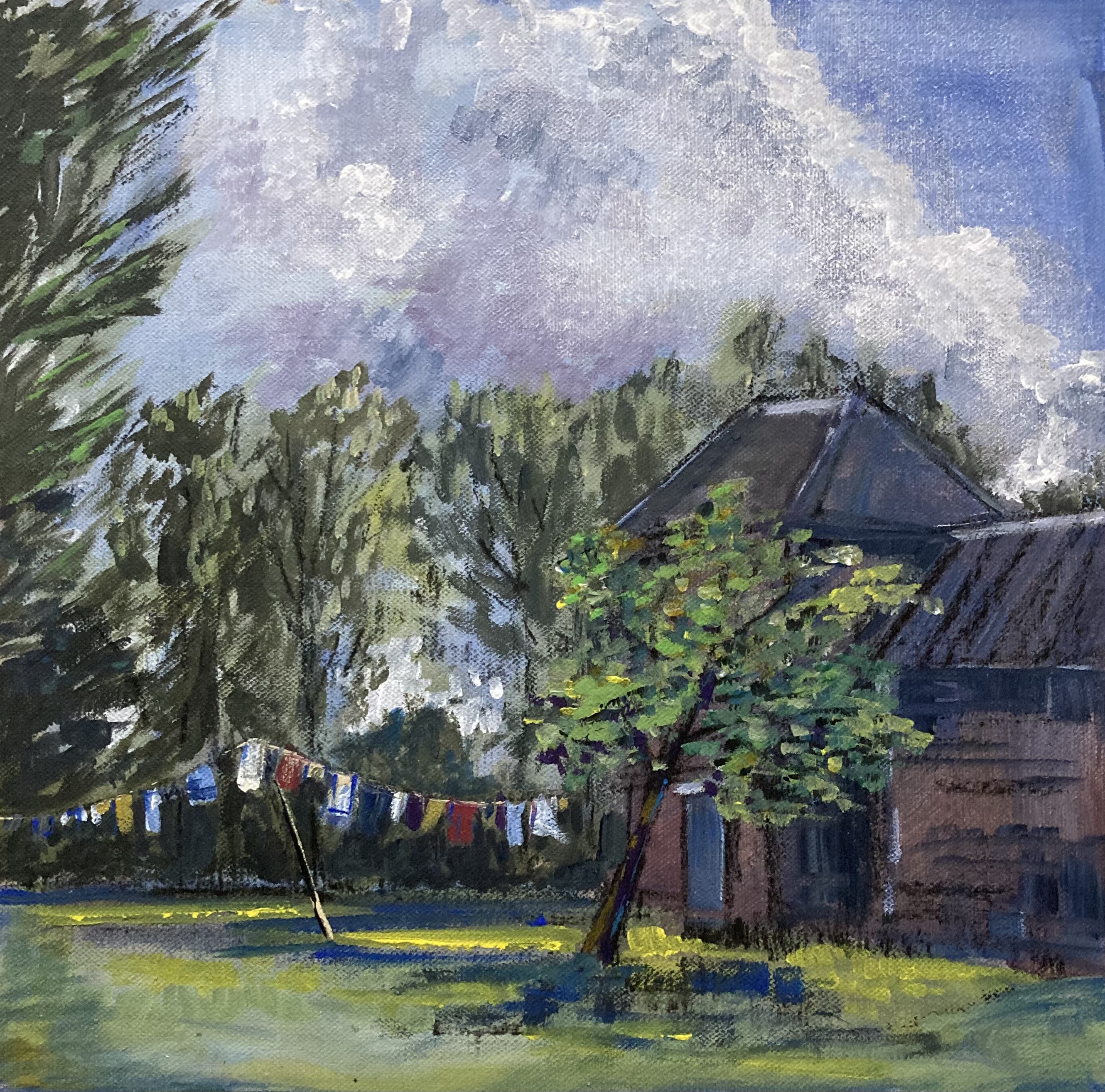 A glorious sunny yet breezy day in Normandy and the washing drying on the line. An image I just had to paint.