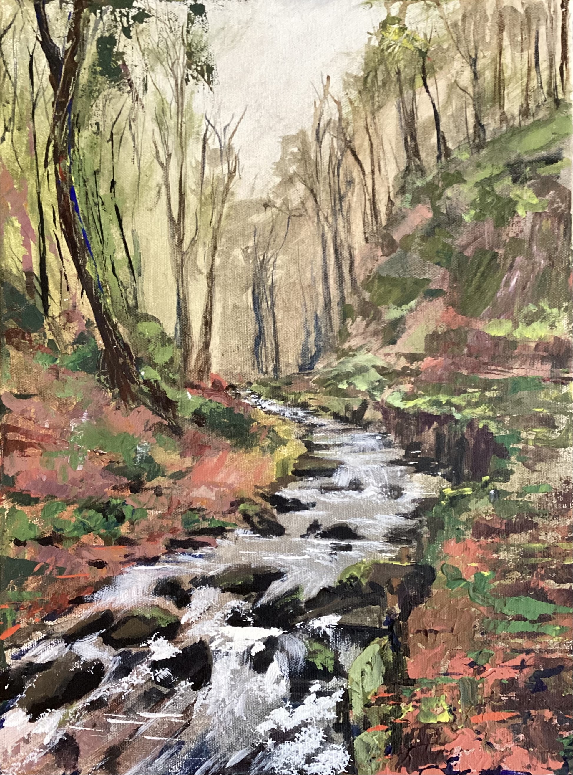 Look at this painting and you can almost hear the sound of the water and the leaves rustling in the gentle breeze.