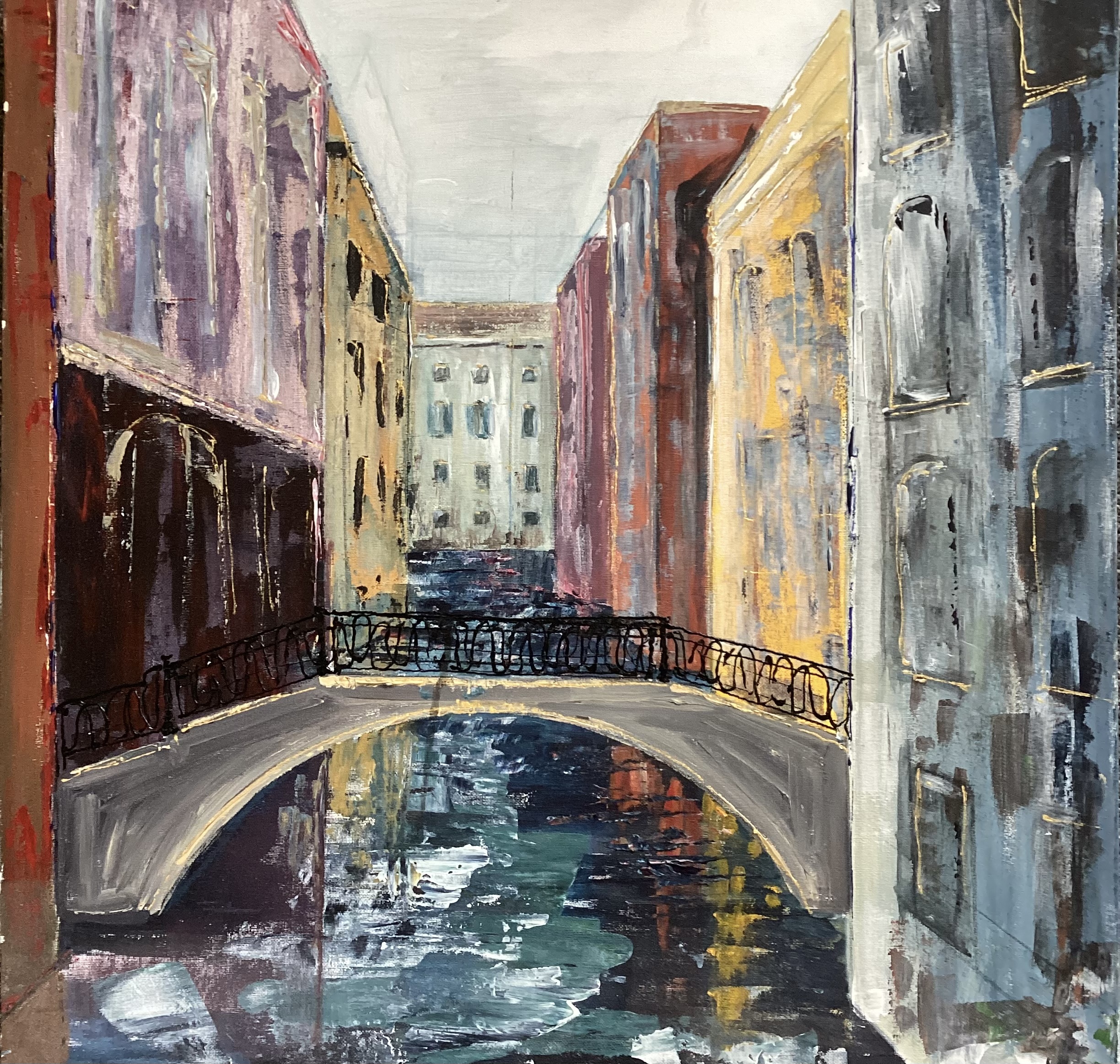 Acrylic paint and raised pen on a 60x60 cm block canvas.