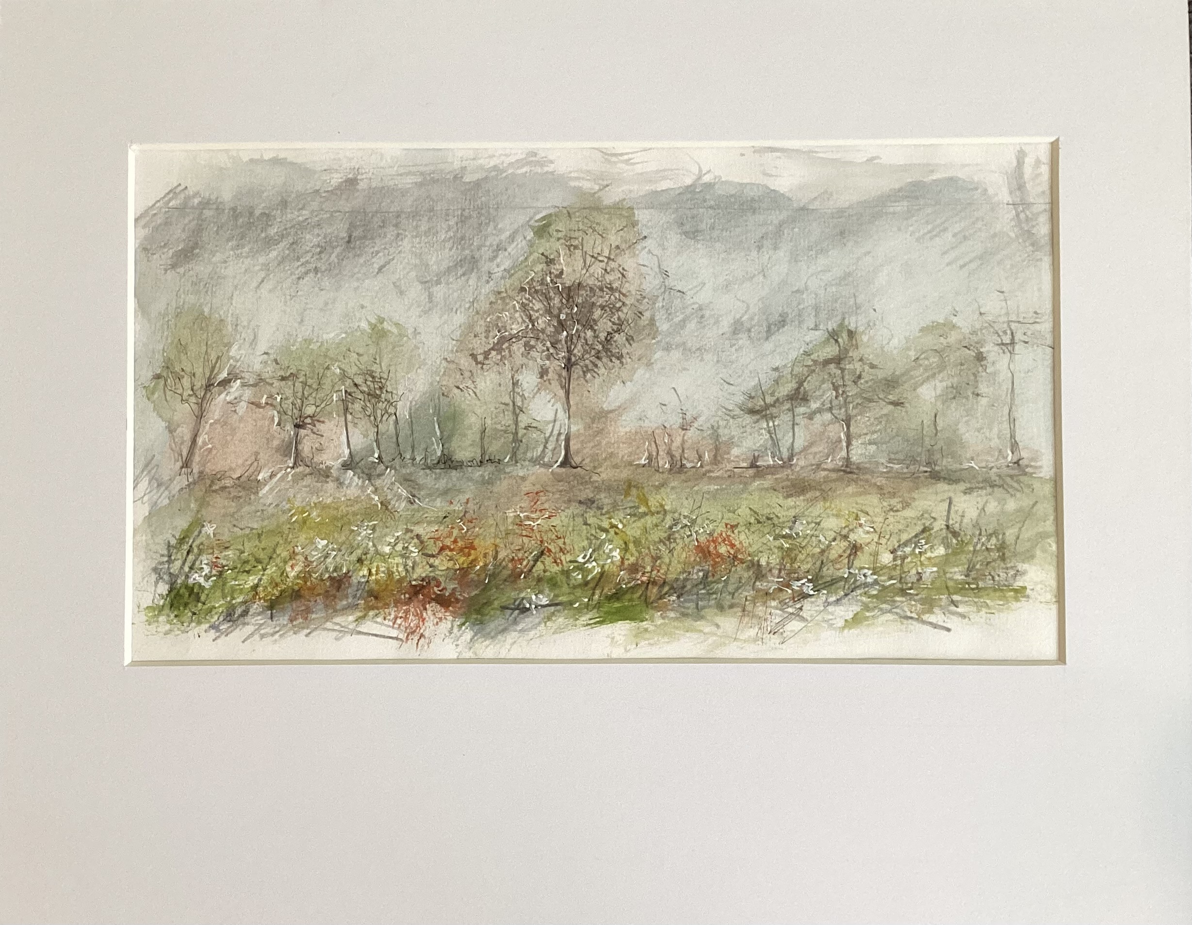 A distinct part of the French, Normandy landscape are the bocages. This is a delicate, mixed media picture on paper .