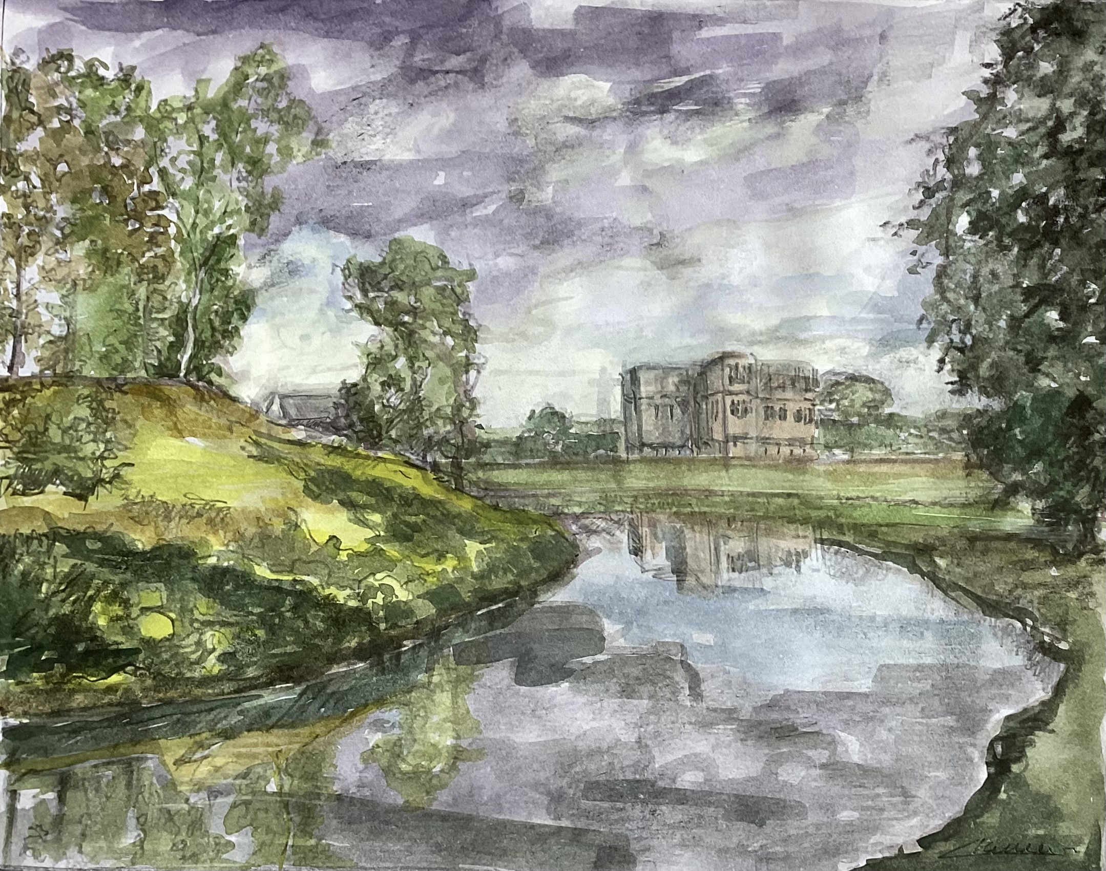Landscape with Lyvden New Bield in the distance.
