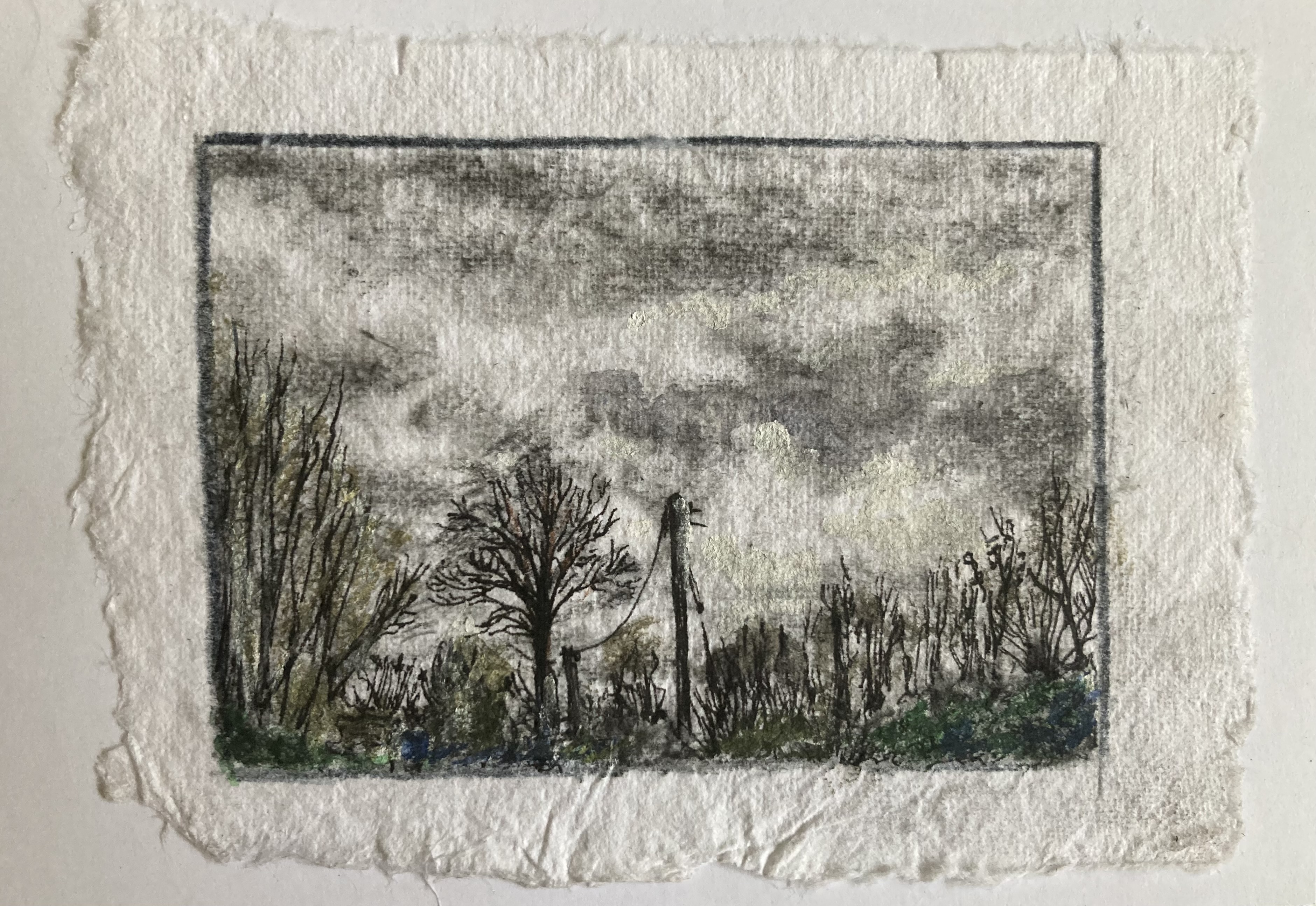 This is a drawing in pencil, graphite and ink pen on rag paper.